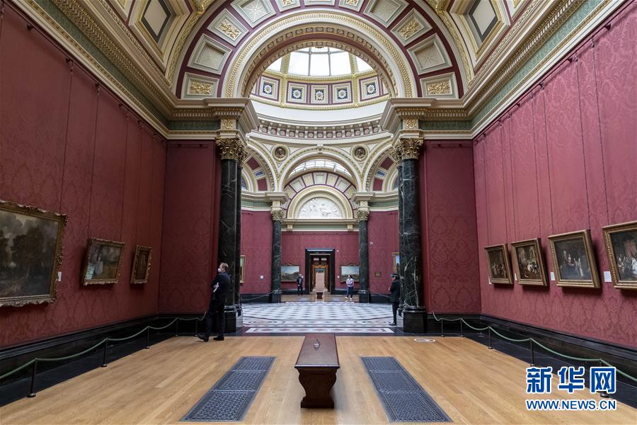 7月4日,參觀者佩戴口罩在英國(guó)國(guó)家美術(shù)館的媒體開(kāi)放日上參觀。受新冠疫情影響而關(guān)閉的英國(guó)國(guó)家美術(shù)館將于7月8日重新對(duì)公眾開(kāi)放,成為倫敦首批開(kāi)門迎客的博物館、美術(shù)館。參觀者需提前網(wǎng)上預(yù)約參觀時(shí)段,全程佩戴口罩且保持安全距離。新華社記者韓巖攝
