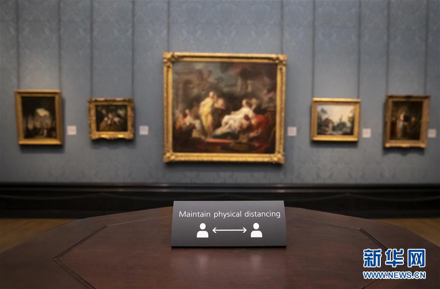7月4日,參觀者佩戴口罩在英國(guó)國(guó)家美術(shù)館的媒體開(kāi)放日上參觀。新華社記者韓巖攝