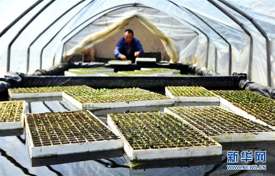 陜西太白縣咀頭鎮(zhèn)塘口村的村民通過(guò)“漂浮育苗”的方式進(jìn)行蔬菜育苗(7月4日攝)。新華社記者劉瀟攝