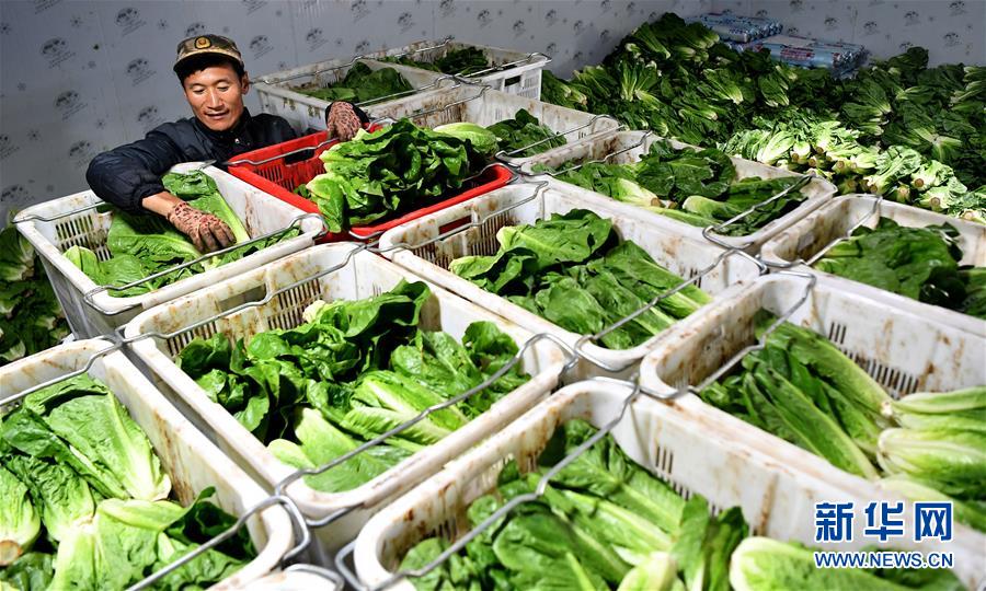 在陜西太白縣咀頭鎮(zhèn)咀頭街村供港蔬菜示范基地內(nèi),工作人員往冷庫(kù)里擺放羅馬生菜(7月4日攝)。新華社記者劉瀟攝