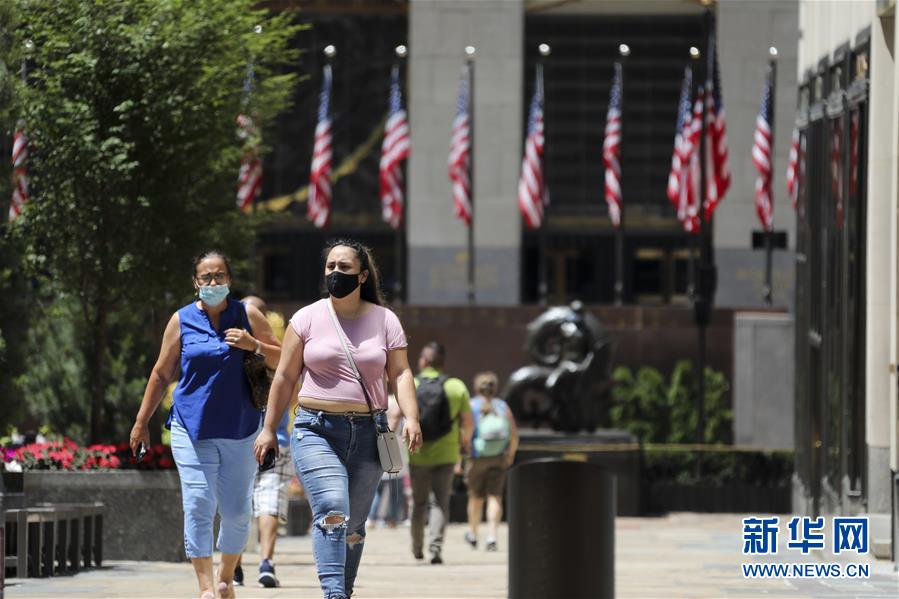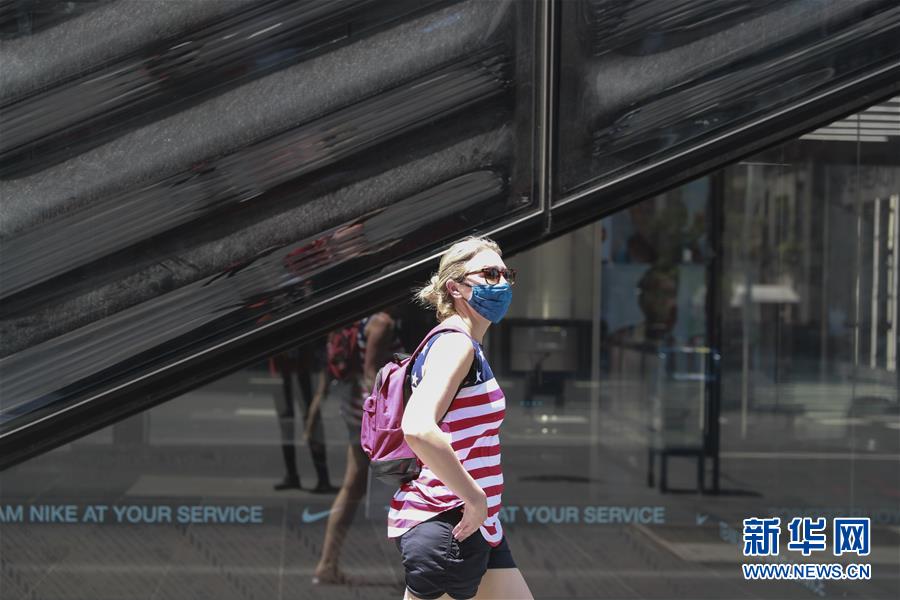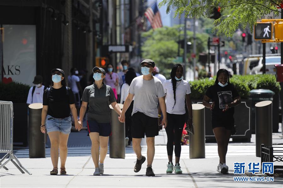 7月4日,人們戴著口罩走在美國紐約第五大道。當日是美國獨立日,美國多地疫情仍面臨嚴峻形勢。美國約翰斯·霍普金斯大學(xué)實時統(tǒng)計數(shù)據(jù)顯示,美國累計新冠確診病例4日已超過280萬例。新華社記者王迎攝