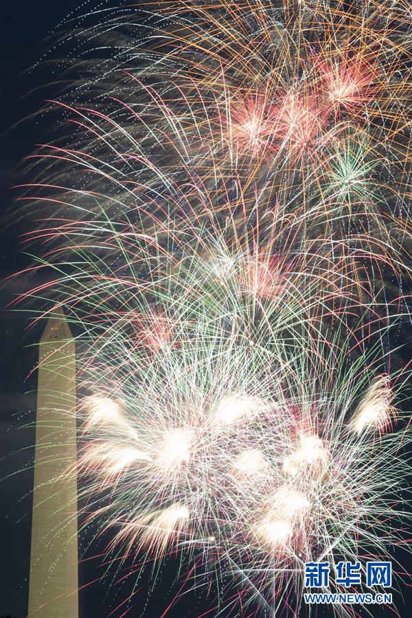 7月4日,焰火在美國華盛頓上空綻放,慶祝美國獨立日。當日是美國獨立日,美國多地疫情仍面臨嚴峻形勢。美國約翰斯·霍普金斯大學(xué)實時統(tǒng)計數(shù)據(jù)顯示,美國累計新冠確診病例4日已超過280萬例。新華社記者劉杰攝