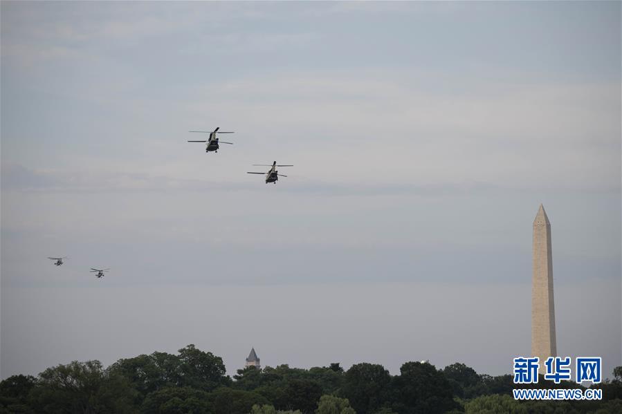 7月4日,直升機在美國華盛頓上空進行飛行表演,慶祝美國獨立日。當日是美國獨立日,美國多地疫情仍面臨嚴峻形勢。美國約翰斯·霍普金斯大學(xué)實時統(tǒng)計數(shù)據(jù)顯示,美國累計新冠確診病例4日已超過280萬例。新華社記者劉杰攝