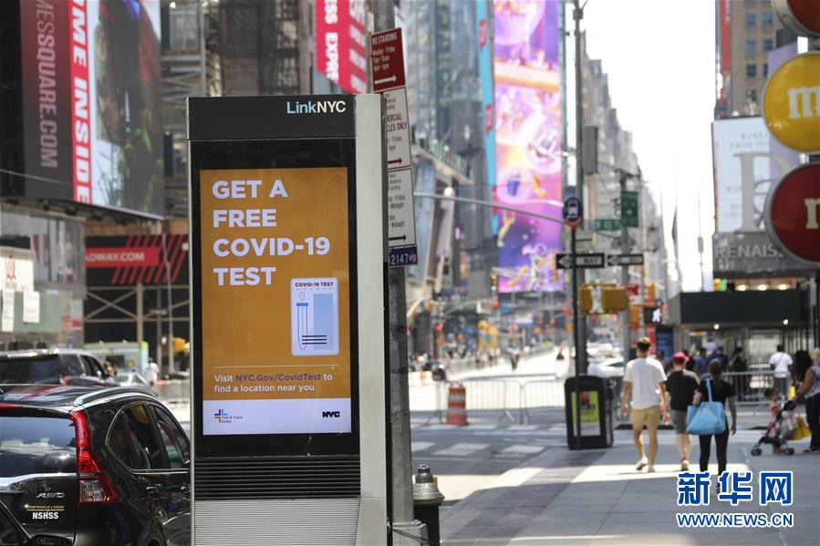 7月4日,美國紐約時報廣場上的行人和車輛稀少。當日是美國獨立日,美國多地疫情仍面臨嚴峻形勢。美國約翰斯·霍普金斯大學(xué)實時統(tǒng)計數(shù)據(jù)顯示,美國累計新冠確診病例4日已超過280萬例。新華社記者王迎攝