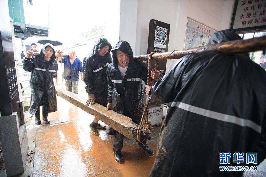7月6日,工作人員在武漢龍王廟封堵閘口。記者6日從武漢市防汛抗旱指揮部辦公室獲悉,5日以來,武漢遭暴雨襲擊,全市多處路段漬水。至6日4時(shí),長江漢口站超設(shè)防水位1.79米,漢江新溝站超警戒水位0.01米。鑒于當(dāng)前水雨汛情和漬澇情況,武漢市從6日5時(shí)起,將排澇應(yīng)急響應(yīng)級(jí)別提升至Ⅱ級(jí);從6時(shí)30分起,將防汛應(yīng)急響應(yīng)級(jí)別提升至Ⅱ級(jí)。新華社記者肖藝九攝