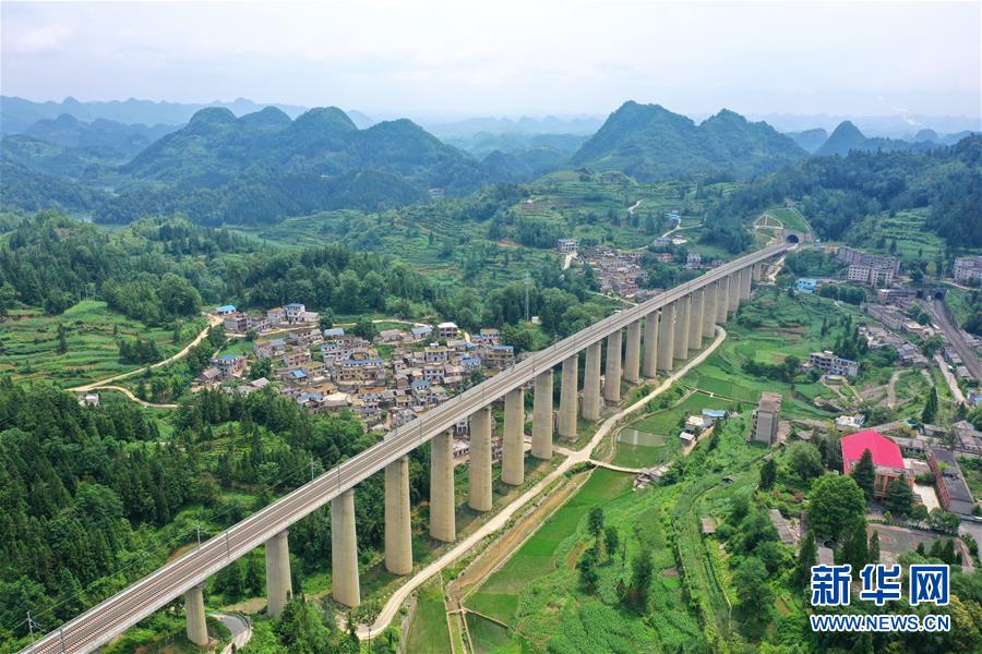 7月6日拍攝的安六鐵路岱港村特大橋(無人機(jī)照片)。當(dāng)日,新建貴州安六鐵路(安順至六盤水)聯(lián)調(diào)聯(lián)試工作進(jìn)入收尾階段,開通前的各項(xiàng)準(zhǔn)備工作已基本就緒。安六鐵路線路全長約125公里,設(shè)計(jì)時(shí)速250公里,為國家I級雙線客運(yùn)專線。建成投用后,貴陽至六盤水的鐵路旅行時(shí)間可從現(xiàn)在的3.5小時(shí)縮短為1小時(shí)左右,貴州省六盤水市將全面接入全國高鐵網(wǎng)。新華社記者劉續(xù)攝