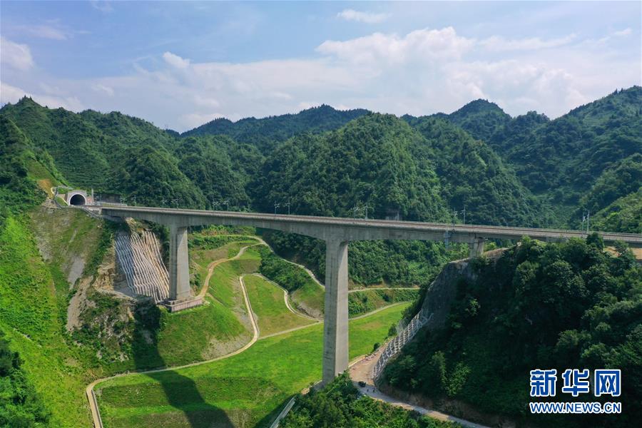 7月6日拍攝的安六鐵路彭家沖一號大橋附近的景觀(無人機(jī)照片)。當(dāng)日,新建貴州安六鐵路(安順至六盤水)聯(lián)調(diào)聯(lián)試工作進(jìn)入收尾階段,開通前的各項(xiàng)準(zhǔn)備工作已基本就緒。安六鐵路線路全長約125公里,設(shè)計(jì)時(shí)速250公里,為國家I級雙線客運(yùn)專線。建成投用后,貴陽至六盤水的鐵路旅行時(shí)間可從現(xiàn)在的3.5小時(shí)縮短為1小時(shí)左右,貴州省六盤水市將全面接入全國高鐵網(wǎng)。新華社記者劉續(xù)攝
