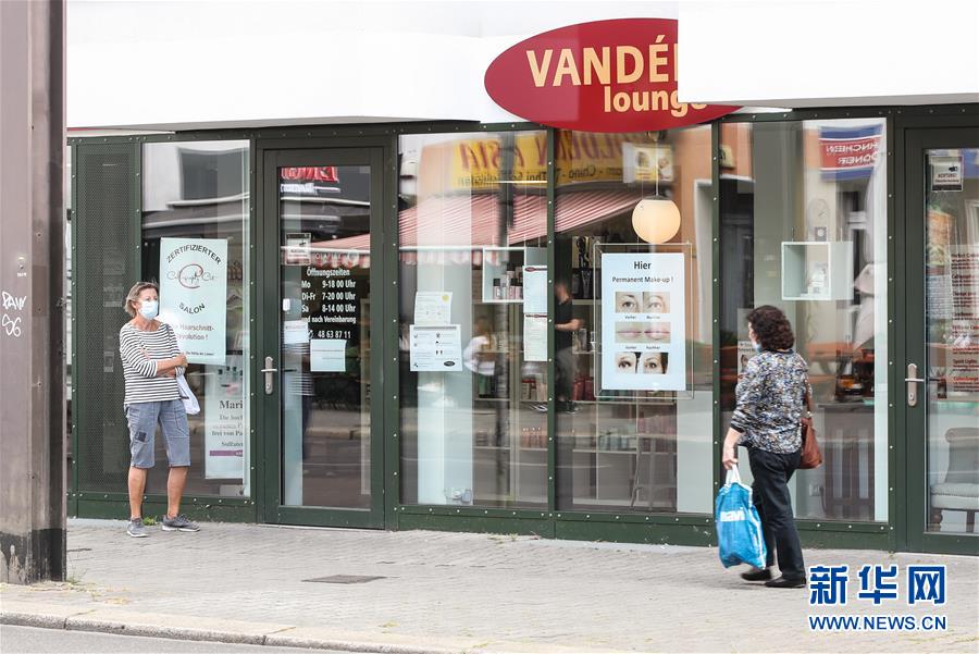 7月7日,一名佩戴口罩的女子(左)等待進(jìn)入德國(guó)首都柏林的一家理發(fā)店。針對(duì)有地方官員呼吁取消民眾乘坐公交車和在商場(chǎng)購物時(shí)須戴口罩的規(guī)定,德國(guó)聯(lián)邦政府6日表示,支持延續(xù)“口罩強(qiáng)制令”。4月底,德國(guó)全部16個(gè)聯(lián)邦州陸續(xù)出臺(tái)“口罩強(qiáng)制令”,即居民在乘坐公交車和購物時(shí)須佩戴口罩。新華社記者單宇琦攝