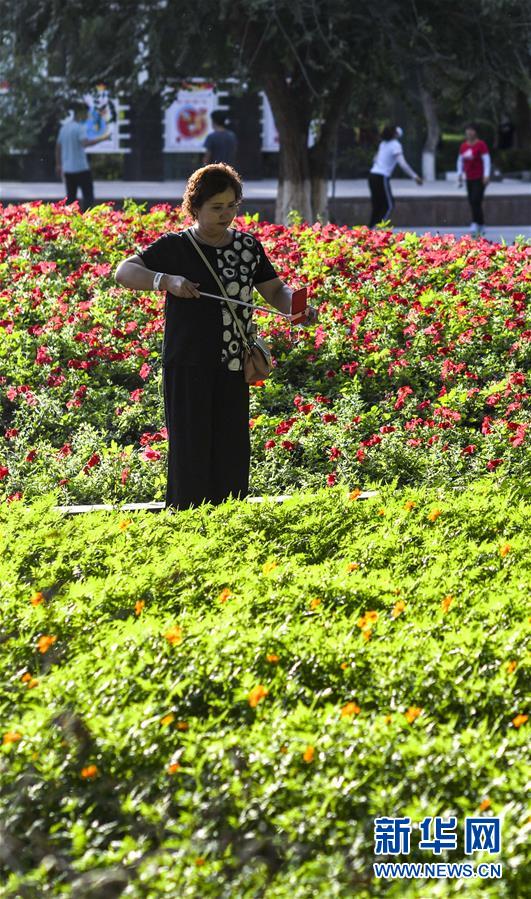 一名市民準備在烏魯木齊人民公園拍照(7月5日攝)。新華社記者趙戈攝