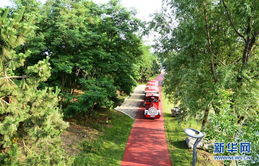 7月7日,游覽小火車穿梭在日照陽光海岸綠道內(nèi)。新華社記者王凱攝