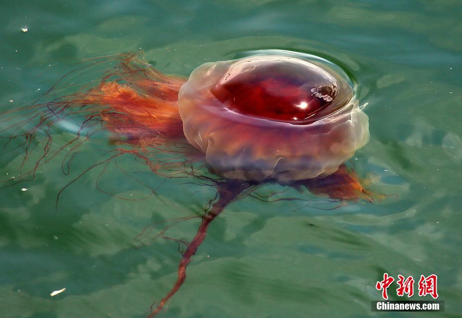 當(dāng)?shù)貢r間2020年6月25日,美國馬薩諸塞州,美國南部海岸近期出現(xiàn)大量獅鬃水母。圖片來源:視覺中國