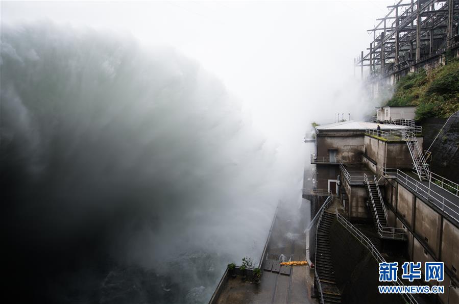 7月8日,新安江水庫開啟9孔泄洪,新安江電廠工作人員在壩區(qū)巡視。當(dāng)日上午10時(shí),新安江水庫水位108.42米,超汛限水位1.92米,且持續(xù)上漲。繼7日10時(shí)開啟3孔、12時(shí)開啟5孔、16時(shí)開啟7孔泄洪后,水庫于8日打開全部9個(gè)泄洪閘泄洪,這在水庫建成運(yùn)營(yíng)61年來尚屬首次。新安江水庫是華東地區(qū)最大的水庫,在錢塘江流域的防洪度汛中起到關(guān)鍵作用。新華社記者翁忻旸攝