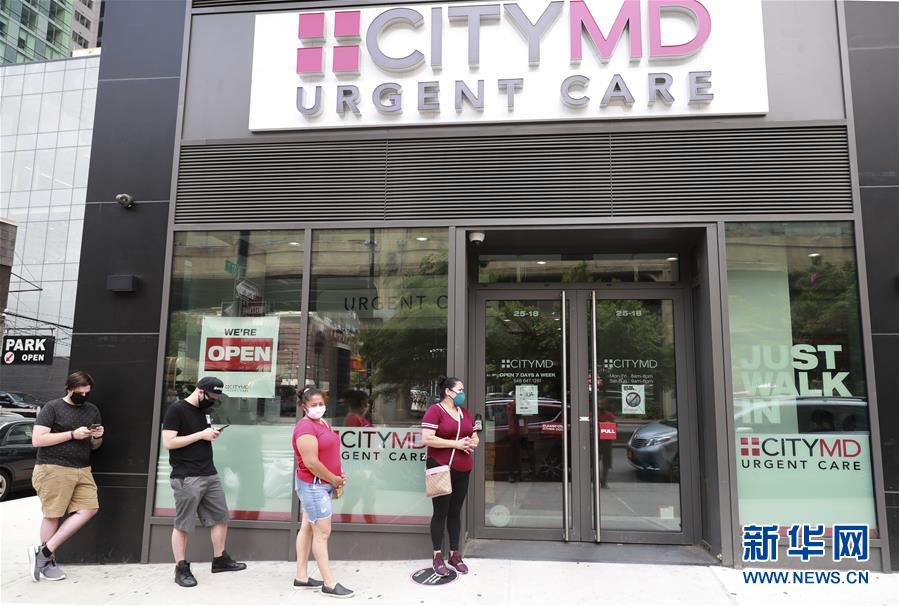 7月8日,人們?cè)诿绹?guó)紐約一家診所外排隊(duì)等候進(jìn)行新冠病毒檢測(cè)。美國(guó)約翰斯·霍普金斯大學(xué)8日發(fā)布的新冠疫情最新統(tǒng)計(jì)數(shù)據(jù)顯示,美國(guó)累計(jì)確診病例超過300萬(wàn)例。數(shù)據(jù)顯示,截至美國(guó)東部時(shí)間8日11時(shí)34分(北京時(shí)間23時(shí)34分),美國(guó)累計(jì)確診病例3016515例,累計(jì)死亡病例131594例。新華社記者王迎攝