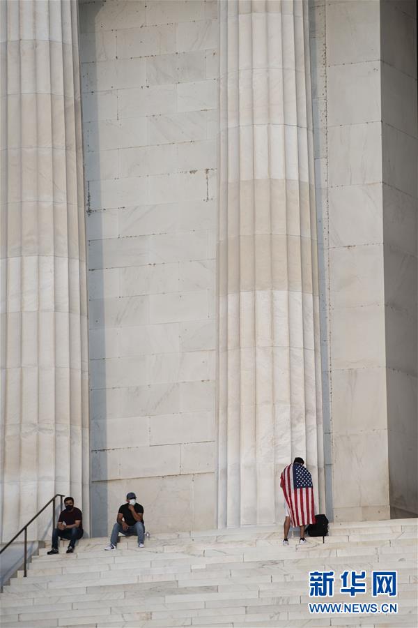 7月8日,在美國華盛頓,一名披著美國國旗的男子站在林肯紀(jì)念堂臺階上。美國約翰斯·霍普金斯大學(xué)8日發(fā)布的新冠疫情最新統(tǒng)計(jì)數(shù)據(jù)顯示,美國累計(jì)確診病例超過300萬例。數(shù)據(jù)顯示,截至美國東部時(shí)間8日11時(shí)34分(北京時(shí)間23時(shí)34分),美國累計(jì)確診病例3016515例,累計(jì)死亡病例131594例。新華社記者劉杰攝