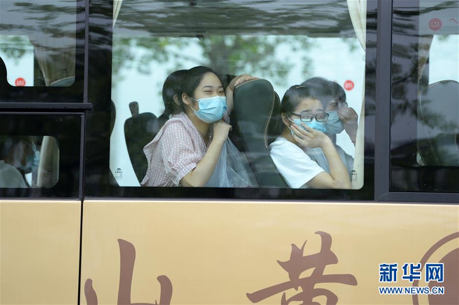 7月9日,考生乘坐大巴車抵達歙縣第二中學(xué)考點。受強降雨影響,2020年高考安徽歙縣考區(qū)7月7日未能如期開考,經(jīng)研究并報教育部批準,歙縣考區(qū)于9日啟用2020年普通高等學(xué)校招生全國統(tǒng)一考試語文、數(shù)學(xué)(文、理)科目副題進行考試。新華社記者黃博涵攝