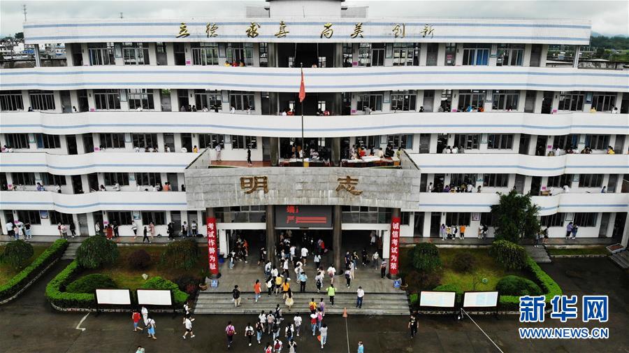 7月9日,考生進(jìn)入歙縣第二中學(xué)考點(無人機(jī)照片)。受強(qiáng)降雨影響,2020年高考安徽歙縣考區(qū)7月7日未能如期開考,經(jīng)研究并報教育部批準(zhǔn),歙縣考區(qū)于9日啟用2020年普通高等學(xué)校招生全國統(tǒng)一考試語文、數(shù)學(xué)(文、理)科目副題進(jìn)行考試。新華社記者黃博涵攝
