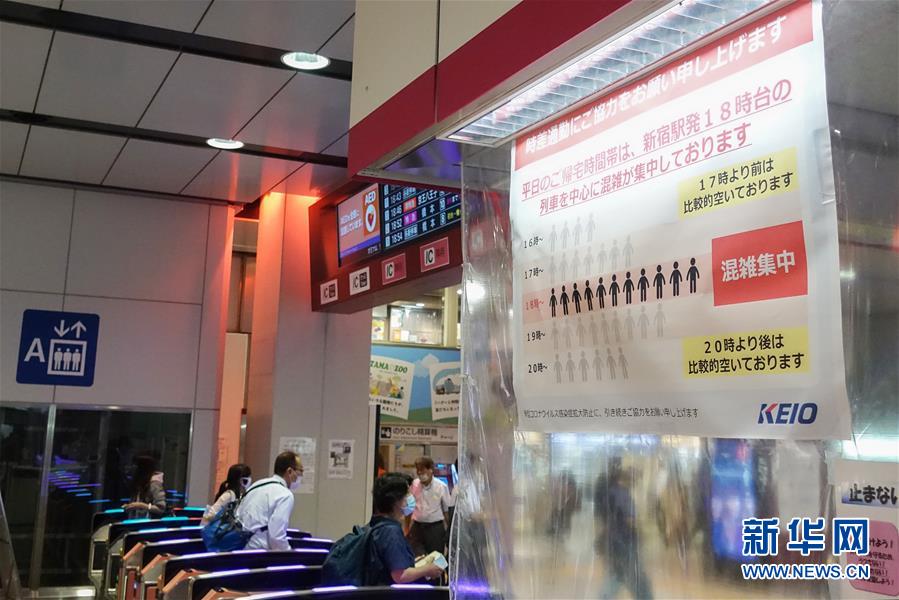 7月9日,日本東京新宿車站的一處入口上貼出告示,顯示該線路的人流量統(tǒng)計,建議乘客錯峰出行。據日本廣播協(xié)會電視臺9日統(tǒng)計,截至當地時間9日20時40分,日本當日新增新冠確診病例354例,是5月2日以來該國單日新增確診首次超過300例,累計確診20767例,累計死亡982例。據統(tǒng)計,東京都當天新增確診224例,創(chuàng)當地出現疫情以來單日新增確診新高。新華社記者杜瀟逸攝