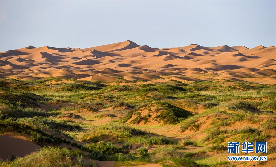 這是7月8日拍攝的騰格里沙漠風光。位于內蒙古自治區(qū)阿拉善左旗西南部和甘肅省中部邊境的騰格里沙漠是我國第四大沙漠,總面積約為4.3萬平方公里。夏日傍晚,騰格里沙漠連綿的沙丘被日光勾勒出美麗的線條,美不勝收。新華社記者連振攝