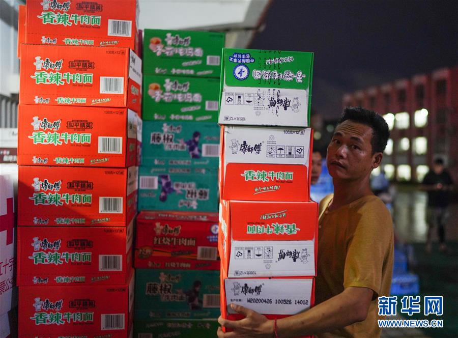 7月9日,工作人員在搬運(yùn)供安置點(diǎn)村民食用的方便面。當(dāng)日,江西鄱陽縣鄱陽鎮(zhèn)因洪水受災(zāi)的村民被轉(zhuǎn)移到多個(gè)集中安置點(diǎn)。在鄱陽縣五一中心學(xué)校安置點(diǎn),志愿者和工作人員接到任務(wù)后不到十小時(shí)內(nèi),為被轉(zhuǎn)移村民布置了28間教室,供519人安頓,并為村民發(fā)放褥子、床單、枕頭、盒飯、飲用水等物資。新華社記者周密攝