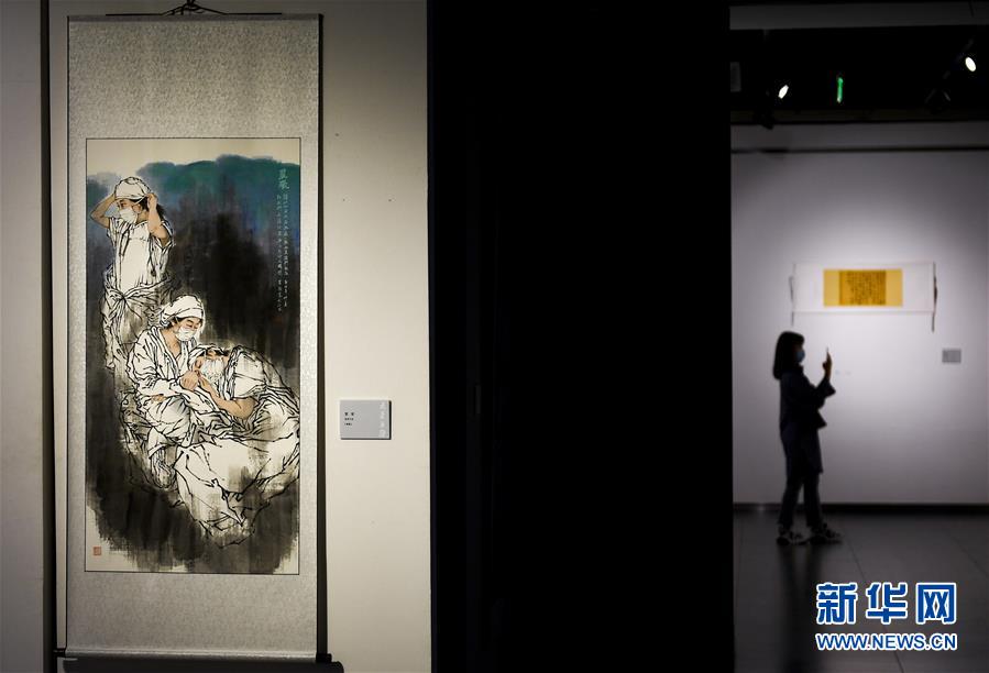 7月11日,觀眾在吉林省抗疫主題美術(shù)·攝影作品展上參觀。近日,“大愛無疆——吉林省抗疫主題美術(shù)·攝影作品展”在吉林省工藝美術(shù)館與觀眾見面。展覽共展出抗擊新冠肺炎疫情主題書法、國(guó)畫、油畫、攝影等作品367件(組)。新華社 記者許暢 攝