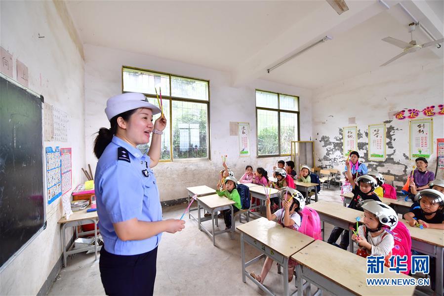 7月11日,柳州市交警支隊民警給小朋友們上交通安全知識課。當日,廣西柳州市交警支隊的民警來到融水苗族自治縣大浪鎮(zhèn)大新村紅鄧屯教學點,開展暑期交通安全教育活動,增強孩子們的安全出行意識。新華社記者黃孝邦攝