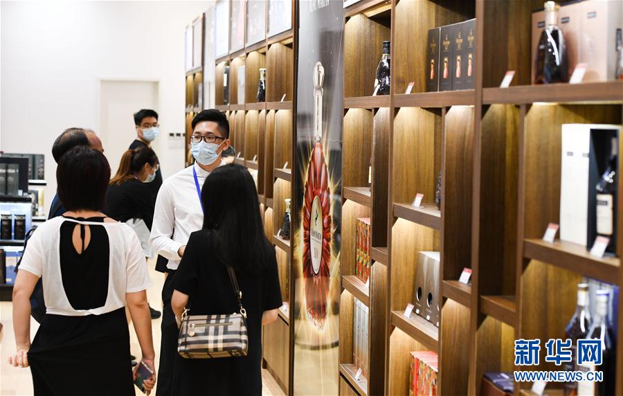 7月12日,游客在海口日月廣場(chǎng)免稅店選購(gòu)酒類產(chǎn)品。新華社記者 楊冠宇 攝