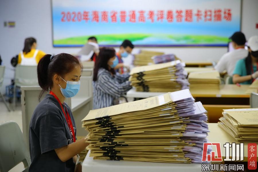 2020年7月13日,在海南師范大學(xué)高考評(píng)卷場(chǎng),工作人員仔細(xì)拆封考卷并進(jìn)行掃描入電腦,整個(gè)過(guò)程井然有序。在評(píng)卷現(xiàn)場(chǎng)的入口,除了有武警把守之外,所有工作人員進(jìn)入到評(píng)卷場(chǎng)均有專人使用手柄式金屬探測(cè)器對(duì)其進(jìn)行安檢,并通過(guò)身份證識(shí)別系統(tǒng)中進(jìn)行身份識(shí)別,方可以進(jìn)入??忌痤}卡由武警24小時(shí)值守,并實(shí)行嚴(yán)密的視頻監(jiān)控。