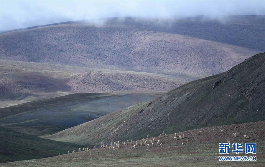 7月7日在可可西里卓乃湖區(qū)域拍攝的一群藏羚羊。目前正值藏羚羊產仔季。來自青海三江源、新疆阿爾金山、西藏羌塘等地的藏羚羊來到位于青海省可可西里腹地、被譽為“藏羚羊大產房”的卓乃湖區(qū)域產仔。新華社記者 薛玉斌 攝
