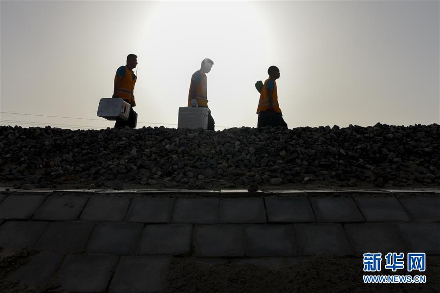 鋼軌打磨機組的技術(shù)員拿著檢測設備前往下一個檢測點(7月14日攝)。新華社記者 丁磊 攝