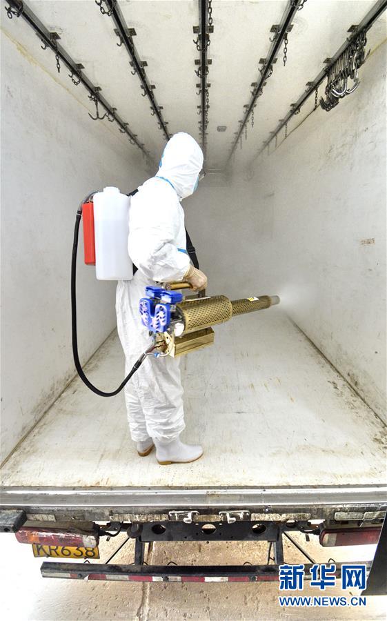 7月15日,北京二商肉類(lèi)食品集團(tuán)有限公司員工對(duì)冷鏈運(yùn)輸設(shè)備進(jìn)行消毒。北京二商肉類(lèi)食品集團(tuán)有限公司是保障北京肉類(lèi)市場(chǎng)供應(yīng)的主要企業(yè)之一。新冠肺炎疫情以來(lái),企業(yè)嚴(yán)格實(shí)施北京市、農(nóng)業(yè)農(nóng)村部和中國(guó)肉類(lèi)協(xié)會(huì)的防疫要求,對(duì)進(jìn)入廠區(qū)的人員、車(chē)輛以及原料采購(gòu)、屠宰分割、產(chǎn)品加工、貯藏運(yùn)輸、廢棄物收集及污水處理等生產(chǎn)環(huán)節(jié)嚴(yán)格防疫,強(qiáng)調(diào)源頭把關(guān)徹底消毒。目前,集團(tuán)公司下屬多家生豬屠宰加工基地正常運(yùn)營(yíng),保質(zhì)保量供應(yīng)北京市場(chǎng)需求。新華社記者 李欣 攝