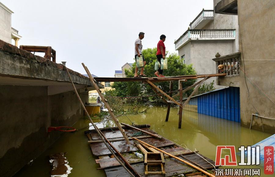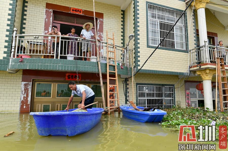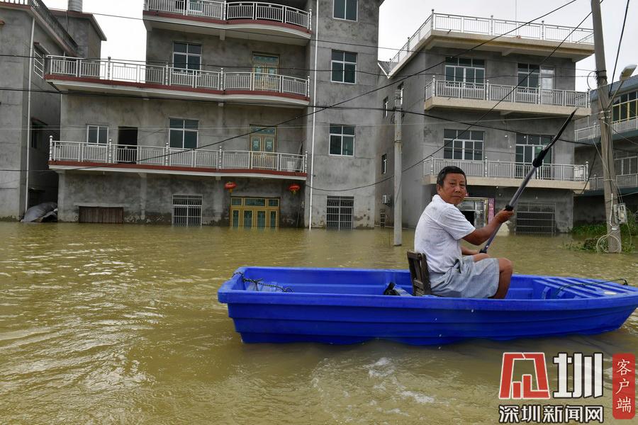 2020年7月15日,江西省鄱陽縣油墩街鎮(zhèn)同興村,村莊受到洪水圍困,大部分村民已經(jīng)被轉(zhuǎn)移出去,仍有少數(shù)村民選擇留守家中積極自救繼續(xù)生活。7月8日晚,鄱陽縣油墩街鎮(zhèn)西江因特大暴雨出現(xiàn)漫堤決口,5個(gè)行政村被洪水圍困,數(shù)萬名群眾被及時(shí)疏散轉(zhuǎn)移。同興村村民張瑤康回憶起了當(dāng)時(shí)的場景,“水一下子就涌進(jìn)來,等緩過神來趕緊向二樓轉(zhuǎn)移一樓的物品。洪水來時(shí)只從一樓搶到了一些輕便易拿的東西,冰箱、洗衣機(jī)之類的大物件,至今仍浸泡在一樓水中?!?5日,記者跟隨張瑤康乘船回家,抵達(dá)后看到,一樓淹沒在水中,一個(gè)綁在二樓護(hù)欄的木梯成為進(jìn)出“家門”的唯一通道。“每天劃船去村里運(yùn)送水和食物,家里有煤氣罐和灶臺(tái)。因?yàn)?0多歲的老母親行動(dòng)不便,我們選擇留守家中。”“雖然對岸就有安置點(diǎn),但還是更愿待在自己家里,一來是不愿意給政府添麻煩,二來能每天看著自己的房子心里踏實(shí)。”同興村村民張長來夫婦帶著剛剛領(lǐng)到的大米、方便面、飲用水乘船回到家中。記者在現(xiàn)場看到,隨著各方救援力量和物資的匯聚,被洪水圍困的村民生活雖有不便,但生活仍在繼續(xù)?!胺孔硬坏梗揖驮?,我們要積極面對,早日重建家園?!睆埇幙蹈嬖V記者。