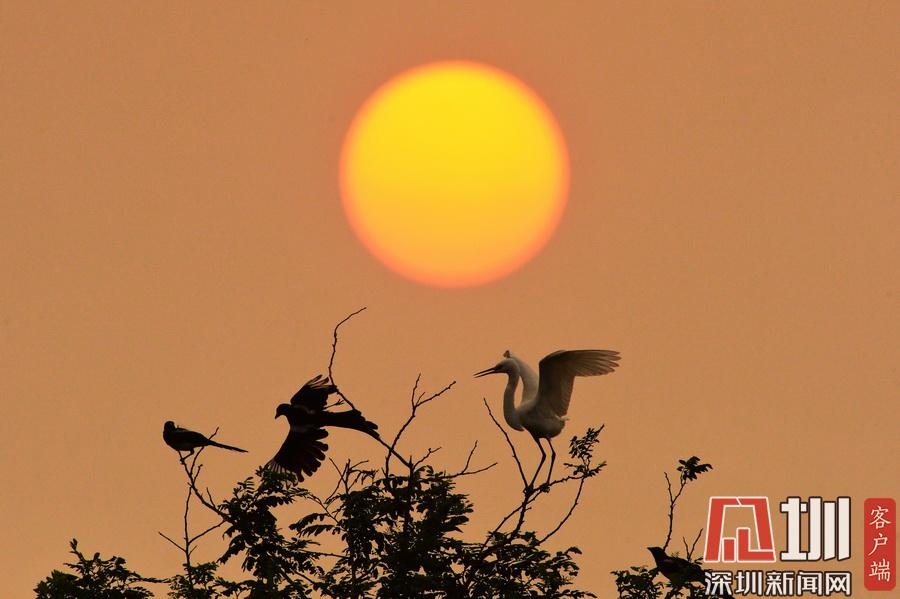 山東青島“鷺舞”林間 宛如一幅寫意山水畫