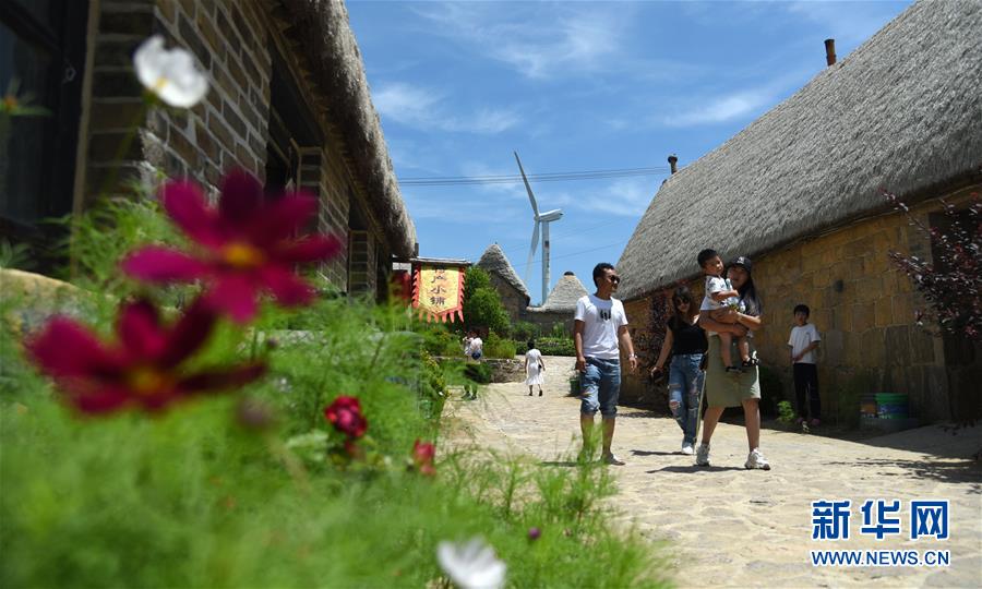7月17日,游客在以傳統(tǒng)海草民居聞名的山東榮成東楮島村觀光。近年來,山東省榮成市重點(diǎn)發(fā)展特色海洋旅游產(chǎn)業(yè),打造眾多國(guó)家級(jí)海洋牧場(chǎng),保留修復(fù)傳統(tǒng)海草民居,吸引游客前來觀光體驗(yàn)。如今特色海洋旅游已逐漸成為榮成經(jīng)濟(jì)發(fā)展新的增長(zhǎng)點(diǎn)。新華社記者王凱攝