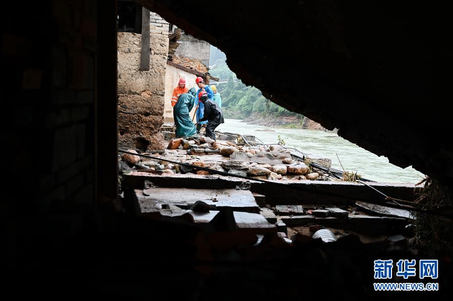 7月10日,救援人員在武夷山市洋莊鄉(xiāng)大安村幫助一戶(hù)受災(zāi)村民清理雜物。7月8日以來(lái),福建南平市多個(gè)縣市普降暴雨或大暴雨,造成部分縣市房屋倒塌、農(nóng)田被淹、道路沖毀。新華社記者林善傳攝