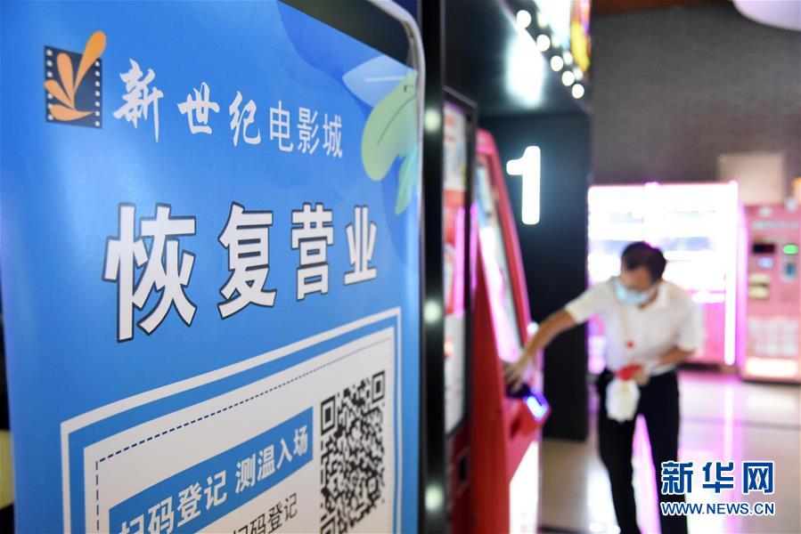 7月20日,濟(jì)南新世紀(jì)電影城陽(yáng)光100店的員工在對(duì)影院設(shè)施進(jìn)行消殺。當(dāng)日,山東濟(jì)南市部分電影院在嚴(yán)格防控疫情的基礎(chǔ)上陸續(xù)恢復(fù)開放。新華社記者王凱攝