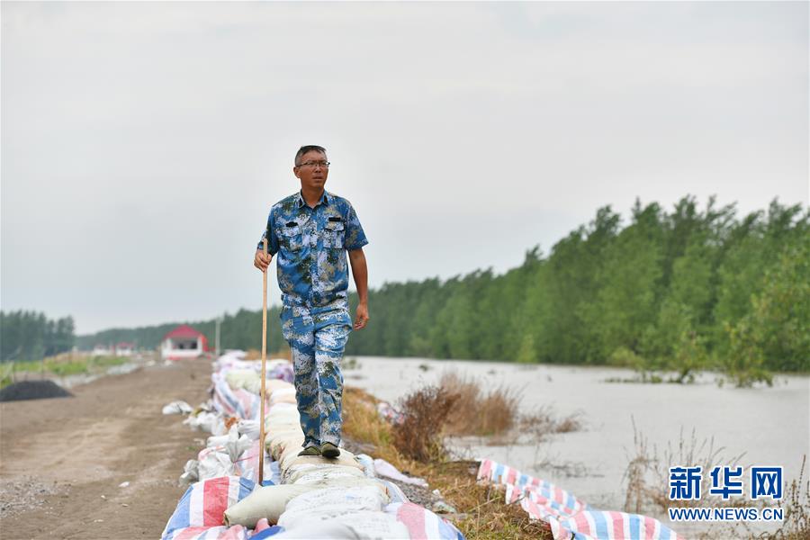 劉良武在江洲鎮(zhèn)的長(zhǎng)江堤壩上巡查(7月19日攝)。新華社記者李鑫攝