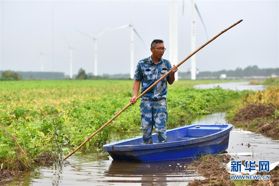 劉良武在堤壩內(nèi)側(cè)積水處排查泡泉(7月19日攝)。新華社記者李鑫攝