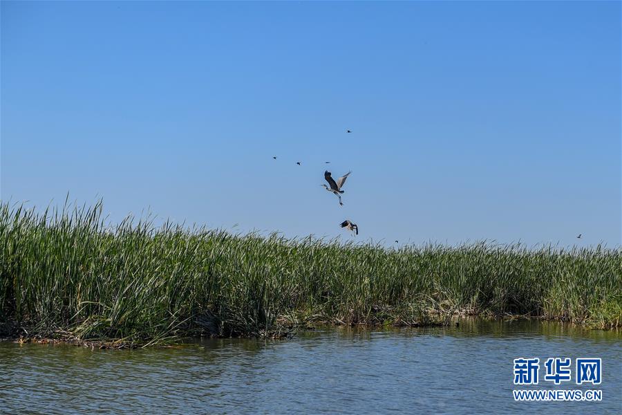 鳥(niǎo)類在查干湖濕地棲息(7月20日攝)。新華社記者張楠攝