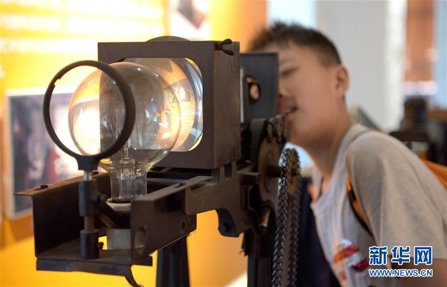 2019年8月29日,參觀者在西影電影藝術(shù)體驗(yàn)中心參觀展出的老式幻燈機(jī)。當(dāng)日,陜西省西安市西影電影藝術(shù)體驗(yàn)中心正式對外開放。新華社記者劉瀟攝
