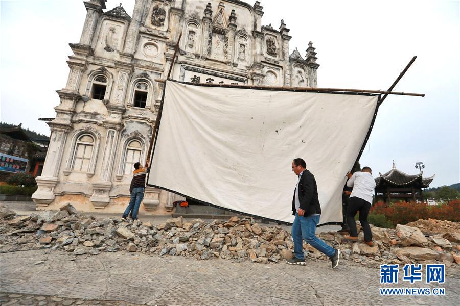 2019年3月19日,在天柱縣坌處鎮(zhèn)三門塘村,黃宜?。ㄖ校┰诖罱娪安シ拍徊?。侗族青年黃宜印是貴州省黔東南苗族侗族自治州天柱縣的一名公益電影放映員。從2014年起,他常年行走在大山里,為山區(qū)群眾播放電影。僅2018年,黃宜印就在天柱縣的37個(gè)村寨播放電影444場。新華社記者歐東衢攝