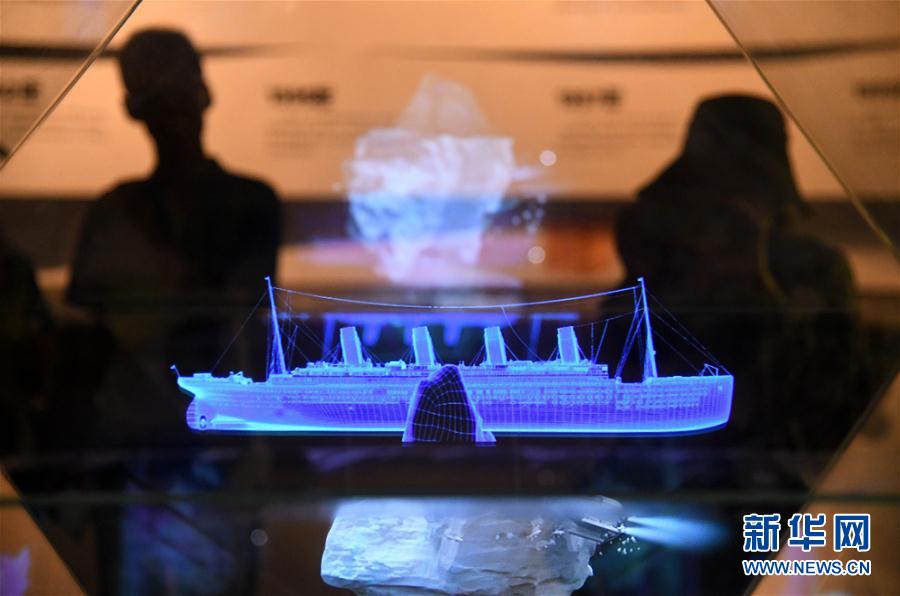 2019年8月28日,參觀者在電影博物館內(nèi)觀看“泰坦尼克號”數(shù)字模型全息演示。當(dāng)日,2019青島國際影視博覽會(huì)舉行青島電影博物館探館活動(dòng)。新華社記者李紫恒攝