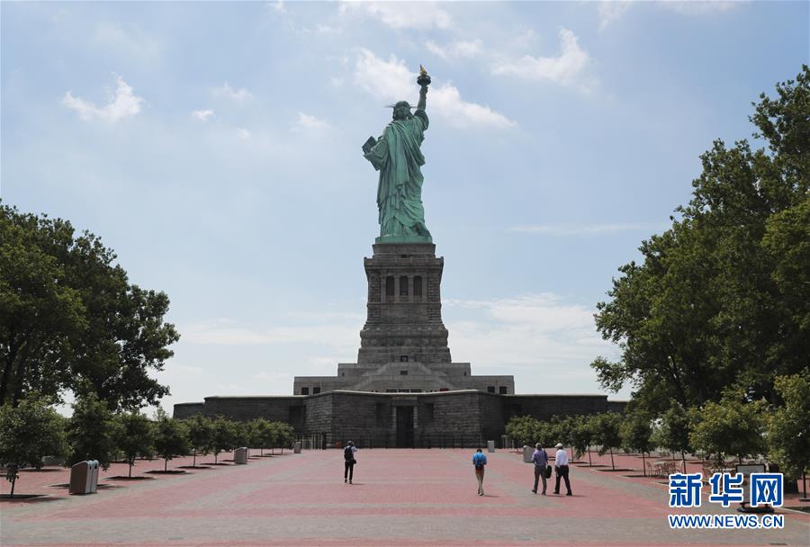 7月20日,參觀者在美國紐約自由島游覽。美國紐約市20日繼續(xù)推進(jìn)經(jīng)濟(jì)重啟計劃,宣布開始進(jìn)入解封新階段,進(jìn)一步允許部分低風(fēng)險文娛活動重啟。自由女神像所在的自由島對公眾開放,但雕像內(nèi)部和博物館仍關(guān)閉。新華社記者王迎攝