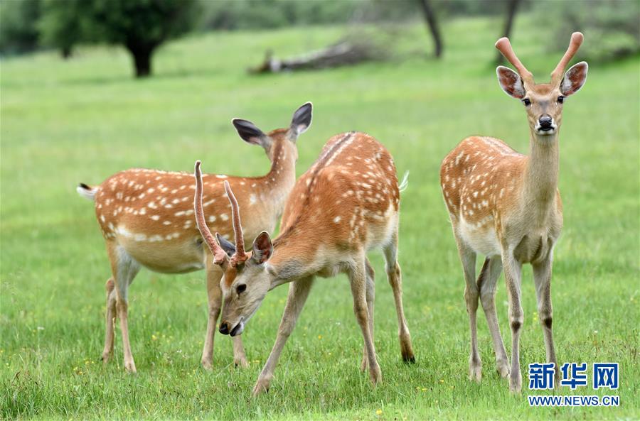 阿壩縣查理鄉(xiāng)神座村里的梅花鹿(7月5日攝)。新華社記者陳?ài)茢z