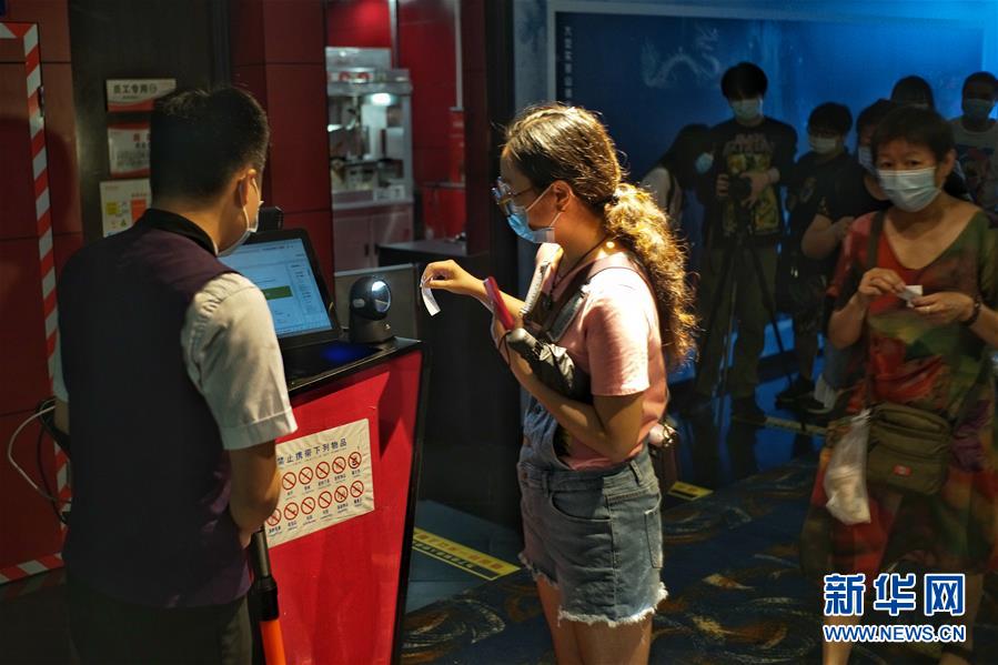7月24日,在首都電影院(西單店),市民排隊驗票進入影廳。當(dāng)日,在做好新冠肺炎疫情防控的前提下,北京市部分電影院有序恢復(fù)開放。新華社記者 彭子洋 攝