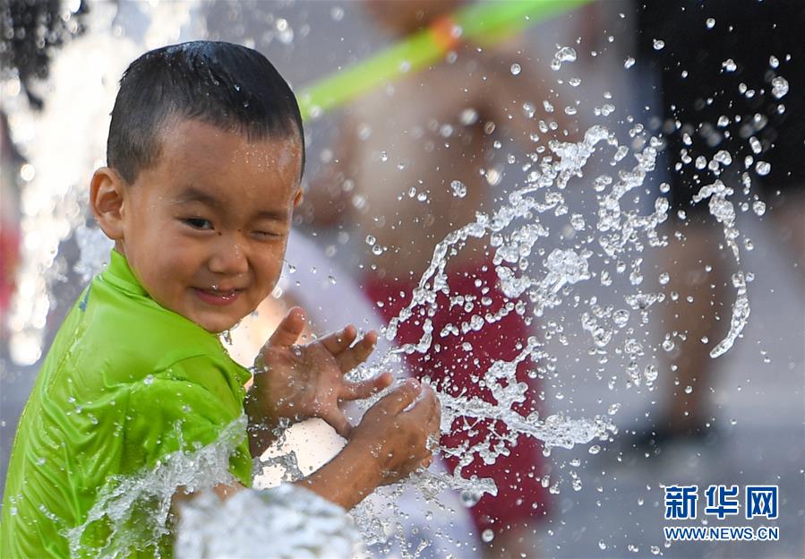 7月24日,一名小男孩在北京華熙LIVE·五棵松商業(yè)街區(qū)的一處噴泉戲水。北京市氣象局7月24日傍晚發(fā)布稱,24日截至16時30分,平原大部分地區(qū)出現37℃以上高溫天氣,局地氣溫超過40℃。北京市已于23日發(fā)布高溫藍色預警,預計25日全市大部分地區(qū)日最高氣溫仍將達35℃以上。新華社記者陳曄華攝