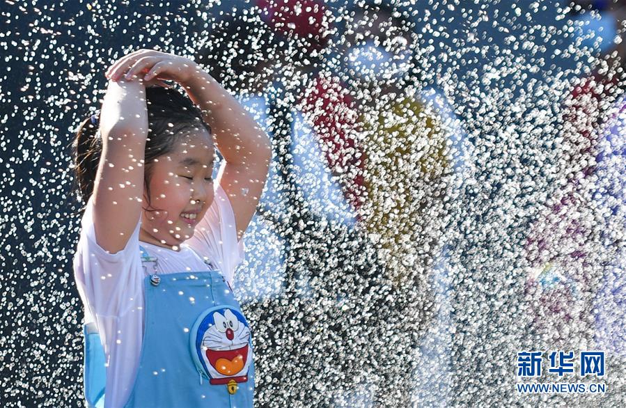 7月24日,一名小女孩在北京華熙LIVE·五棵松商業(yè)街區(qū)的一處噴泉戲水。北京市氣象局7月24日傍晚發(fā)布稱,24日截至16時30分,平原大部分地區(qū)出現37℃以上高溫天氣,局地氣溫超過40℃。北京市已于23日發(fā)布高溫藍色預警,預計25日全市大部分地區(qū)日最高氣溫仍將達35℃以上。新華社記者陳曄華攝