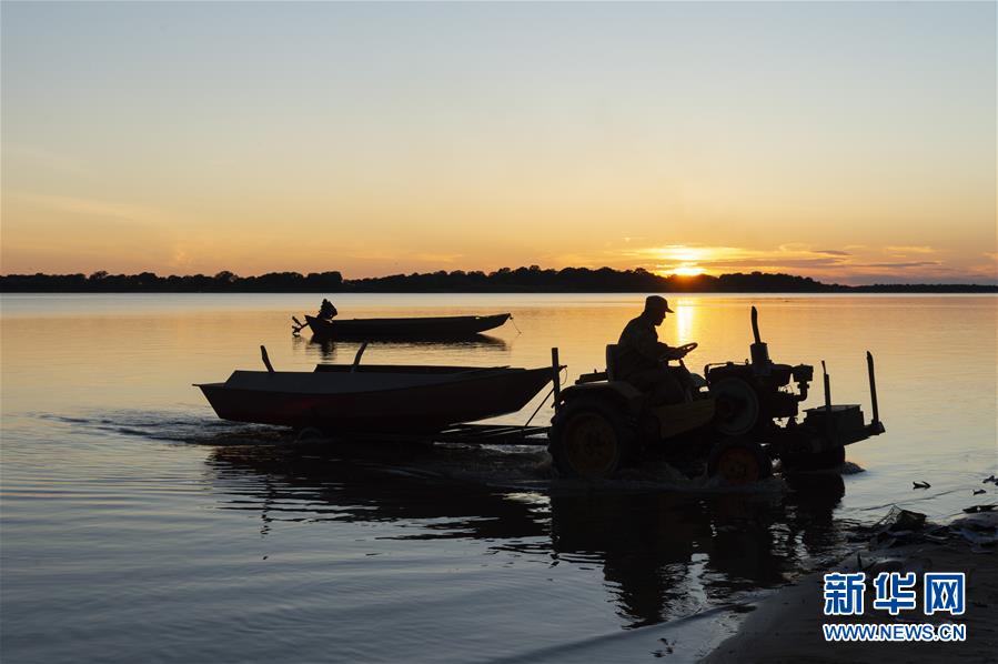 7月24日,漁民在大力加湖中捕魚歸來。大力加湖位于“中國(guó)東極”黑龍江省撫遠(yuǎn)市,面積28.5平方公里,兩岸地勢(shì)低平,多濕地、草原,湖內(nèi)水產(chǎn)豐富。夏日傍晚時(shí)分,漁民捕魚歸來,美麗畫卷映入眼簾。新華社記者謝劍飛攝