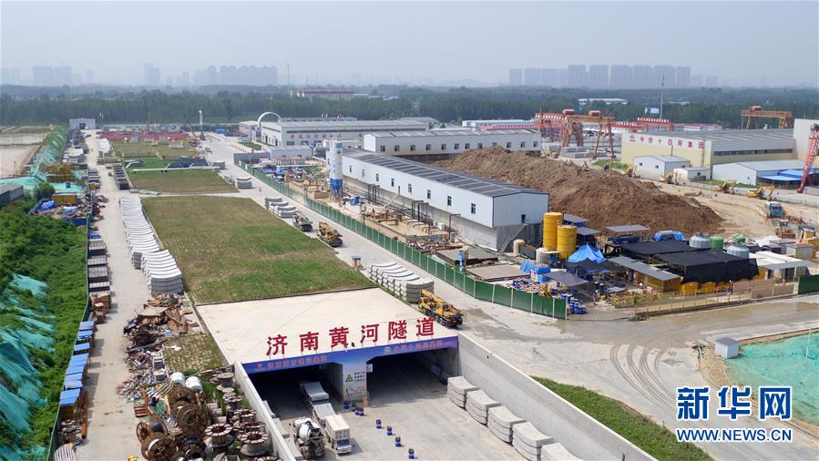 這是7月29日拍攝的“萬(wàn)里黃河第一隧”——濟(jì)南黃河隧道工程施工工地(無(wú)人機(jī)照片)。新華社記者王凱攝