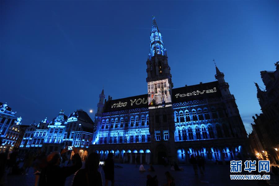 7月29日,比利時(shí)布魯塞爾大廣場的市政廳外墻上投射出“想念你,節(jié)日”的字樣。7月29日,比利時(shí)布魯塞爾大廣場舉行大型聲光秀。藝術(shù)家在市政廳等歷史建筑上投影文字和圖案,紀(jì)念這個(gè)夏天受新冠疫情影響而不能如期舉辦的文化活動(dòng)。新華社記者鄭煥松攝