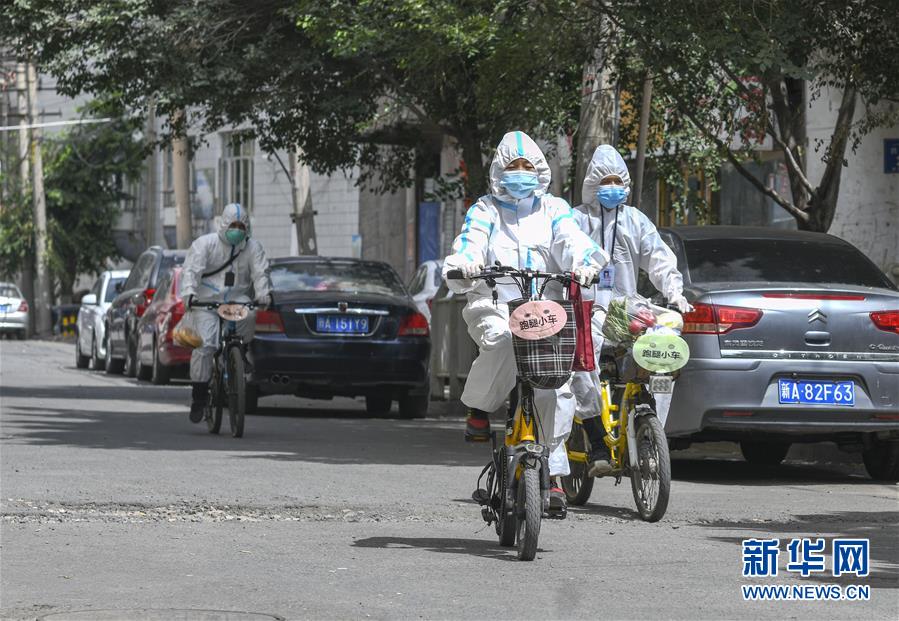 8月3日,在烏魯木齊天山區(qū)西河壩前街社區(qū),社區(qū)工作人員騎著”跑腿小車“為居民送去生活物品。新疆烏魯木齊市天山區(qū)西河壩前街社區(qū)主次干道較多,院落分布分散。新冠肺炎疫情防控期間,社區(qū)整合現(xiàn)有資源,將暫時閑置的自行車、電動車集中起來,貼上“跑腿小車”標識,成立便民服務隊,社區(qū)工作人員通過“跑腿小車”可將居民網(wǎng)絡定制的“菜袋子”“藥盒子”快速送達,給居民帶來方便。新華社記者趙戈攝